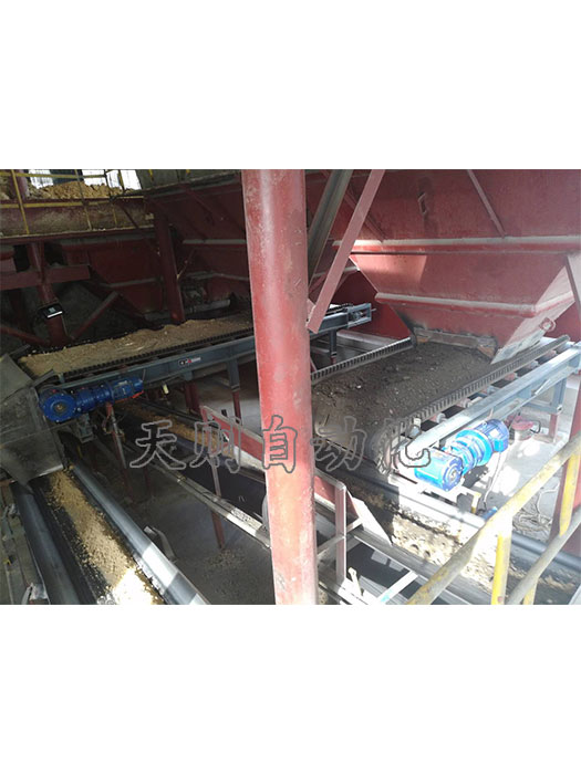 皮帶秤稱重橋架安裝于輸送機架上,當物料經(jīng)過時,計量托輥檢測到皮帶機上的物料重量通過杠桿作用于稱重傳感器,產(chǎn)生一個正比于皮帶載荷的電壓信號。在皮帶秤上有一個稱重傳感器裝在稱重橋架上,工作時,將檢測到皮帶上的物料重量送入稱重儀表,同時由測速傳感器皮帶輸送機的速度信號也送入稱重儀表,儀表將速度信號與稱重信號進行積分處理,得到瞬時流量及累計量。速度傳感器直接連在大直徑測速滾筒上,提供一系列脈沖,每個脈沖表示一個皮帶運動單元,脈沖的頻率正比于帶速度。稱重儀表從稱重傳感器和速度傳感器接收信號,通過積分運算得出一個瞬時流量值和累積重量值,并分別顯示出來。